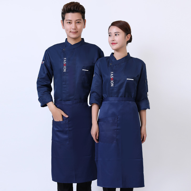 Pakaian kerja koki hotel lengan panjang, pakaian kerja pria lengan panjang musim gugur dan musim dingin, baju setelah makan dapur koki
