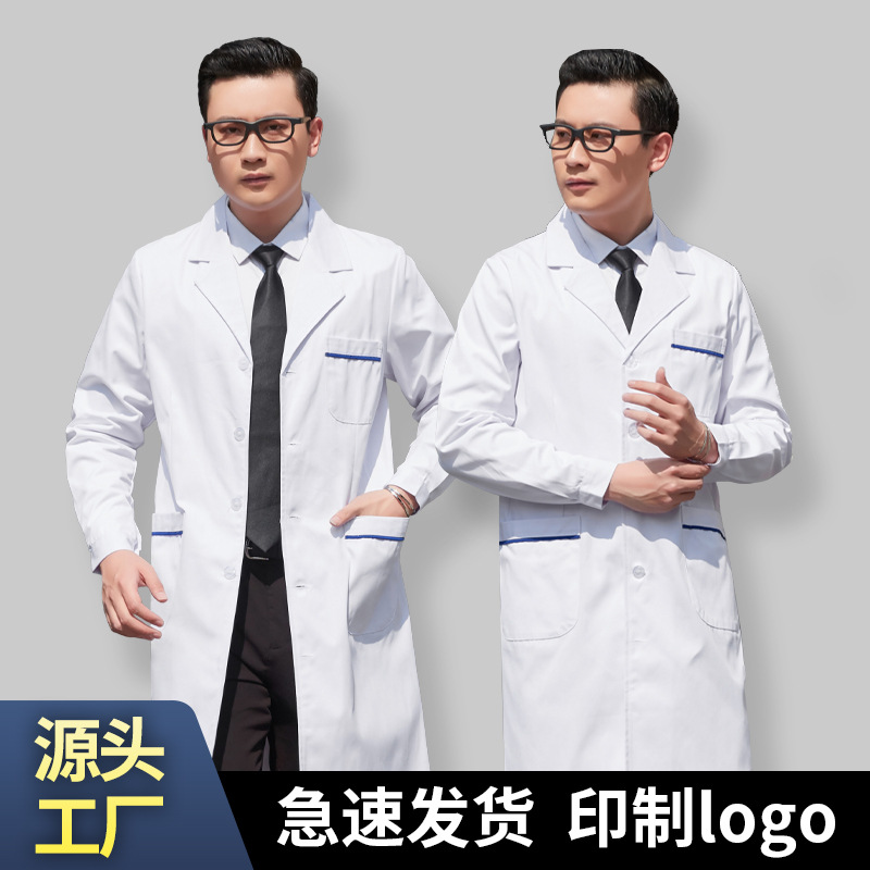 Kacamata dokter lengan panjang pria, gaun putih pakaian eksperimental rantai apotek toko stomatologis overall wanita