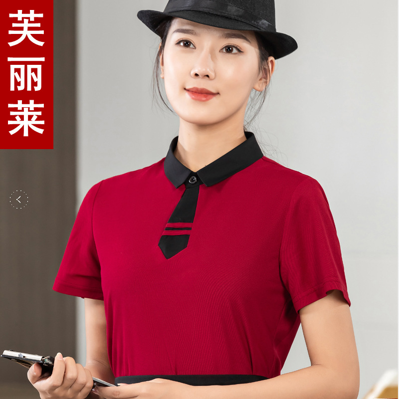 Kaus pria musim panas pakaian kerja setengah lengan untuk pelayan katering pakaian susu teh restoran hot pot hotel pakaian kerja pria dan wanita