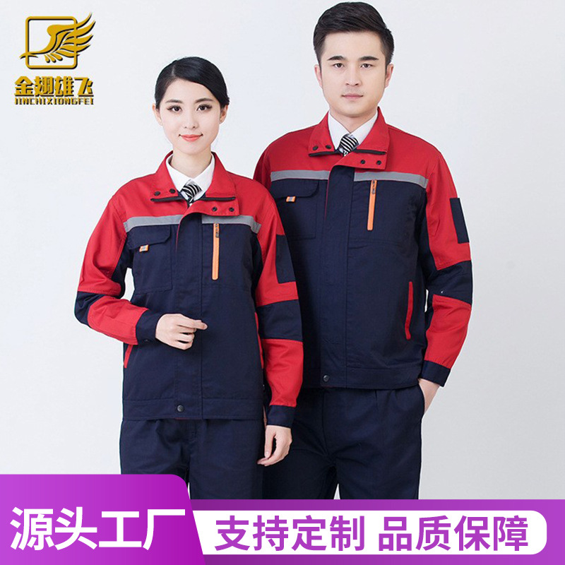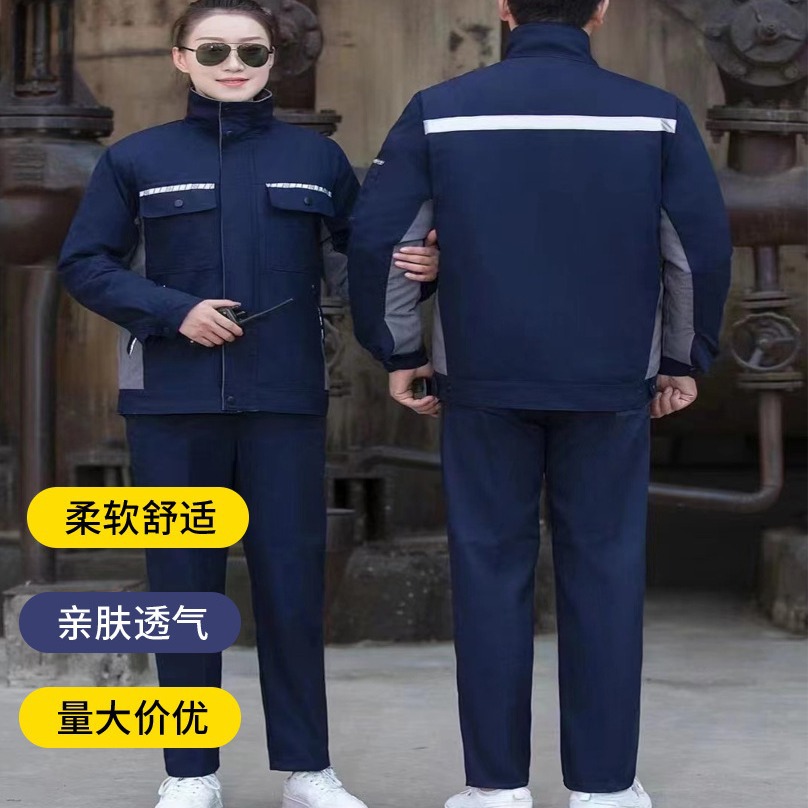 Pakaian kerja bengkel katun murni dengan pengiriman gratis, pakaian kerja lengan panjang dengan strip reflektif, seragam perbaikan mobil dan SPBU, pakaian pelindung kerja yang tahan lama.