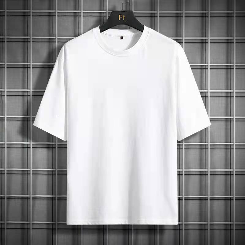 Kaus katun murni pria baru kaus iklan kerah bulat kaus budaya baju kerja longgar warna polos katun kasual anak muda