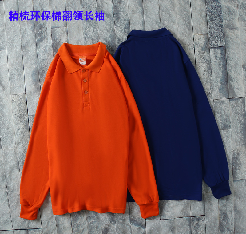 Kerah katun Combed pakaian kerja lengan panjang kaus Polo pria dan wanita musim semi dan musim gugur kaus pria dan wanita bersulam cetak logo kemeja budaya