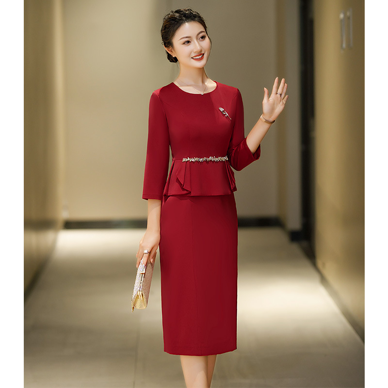 Gaun Pernikahan Ibu kelas atas musim gugur dan musim dingin baru cheongsam merah Selamat gaun mertua elegan temperamen