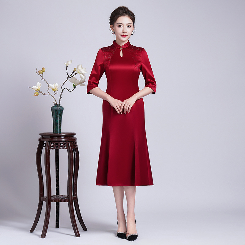 Gaun cheongsam pernikahan ibu mertua Baru Musim Panas 2024