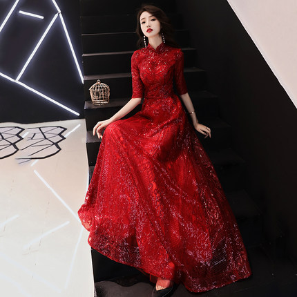 Gaun malam 2019 diskon besar gaun panjang pesta malam catwalk jamuan paduan suara peningkatan ukuran besar gaun cheongsam wanita