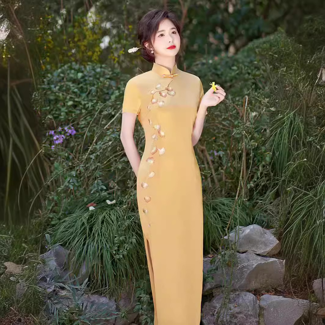 Gaun Wanita Tiongkok baru slim fit musim panas 2023 gaun cheongsam pelangsing elegan muda