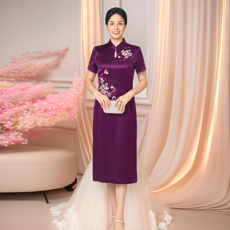 Gaun Perjamuan Pernikahan Nenek Xi Kerah Berdiri Chinoiserie Baru Berkelas Ditingkatkan Cheongsam Musim Gugur Gaun Roti Bakar Pernikahan Wanita Pakaian Ibu