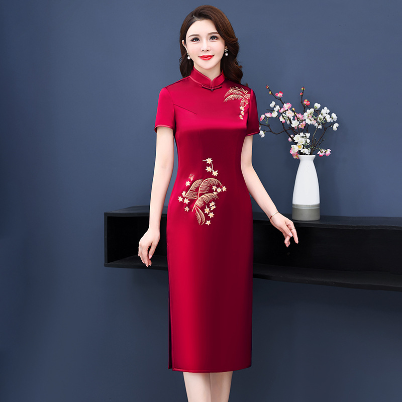 2021 musim semi baru cheongsam elegan bordir sederhana cheongsam ibu pernikahan perjamuan selamat gaun ibu mertua