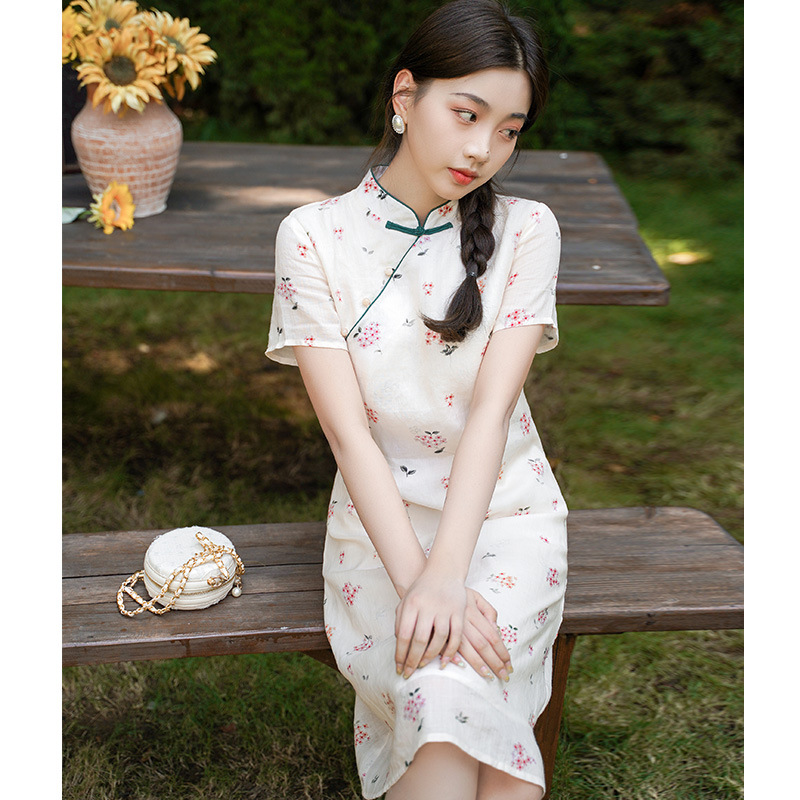 Cheongsam yang dimodifikasi Rok Tiga Rumah Bisa Dipakai Sehari-hari Terlihat Langsing Model Panjang Sedang Lengan Pendek Musim Panas Baru Gaya Tiongkok