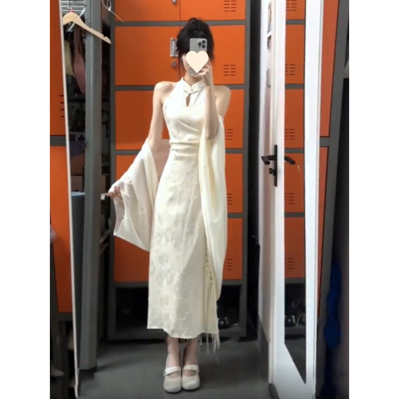 Pakaian Wanita Gaya Tiongkok Baru Rok Cheongsam Modifikasi Gaya Nasional Gaun Menutupi Pinggul Kelas Tinggi Sosialita Elegan Kardigan Dua Potong