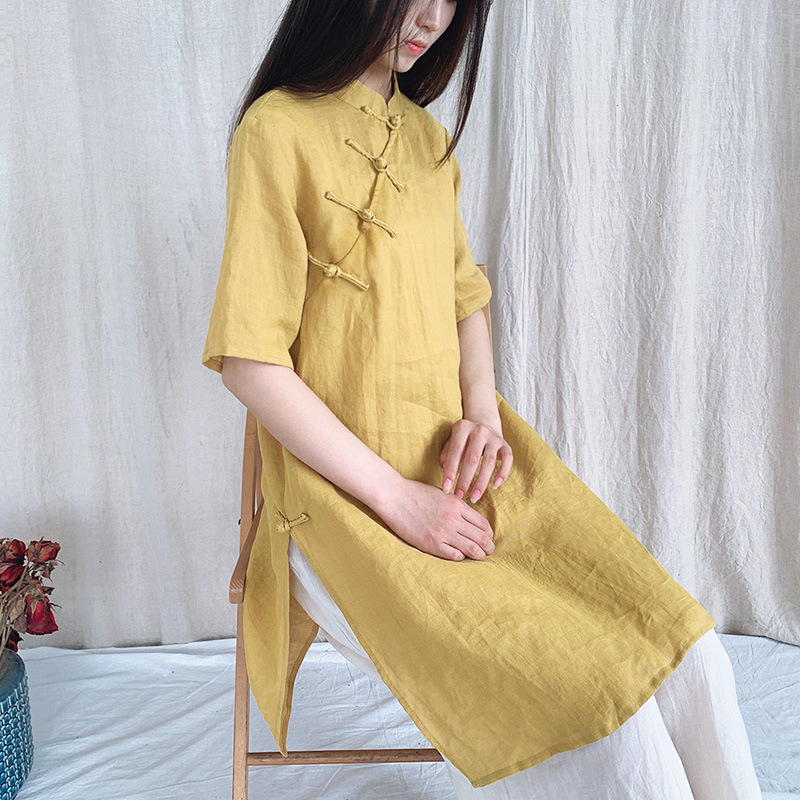 Pakaian Wanita Gaya Nasional Seni Asli Musim Panas 25 Tahun Model Baru Ramie Sulaman Gaya Tiongkok Rok Cheongsam Wanita Pabrik Grosir