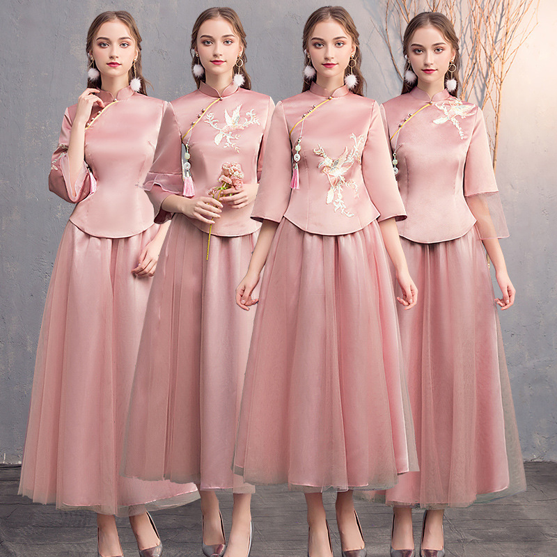 Xiuhe gaun cheongsam pengiring pengantin wanita, bunga 21 tim Pertemuan Tahunan gaun Tiongkok gaun pernikahan kembali ke rumah gaun kuno gaun panjang