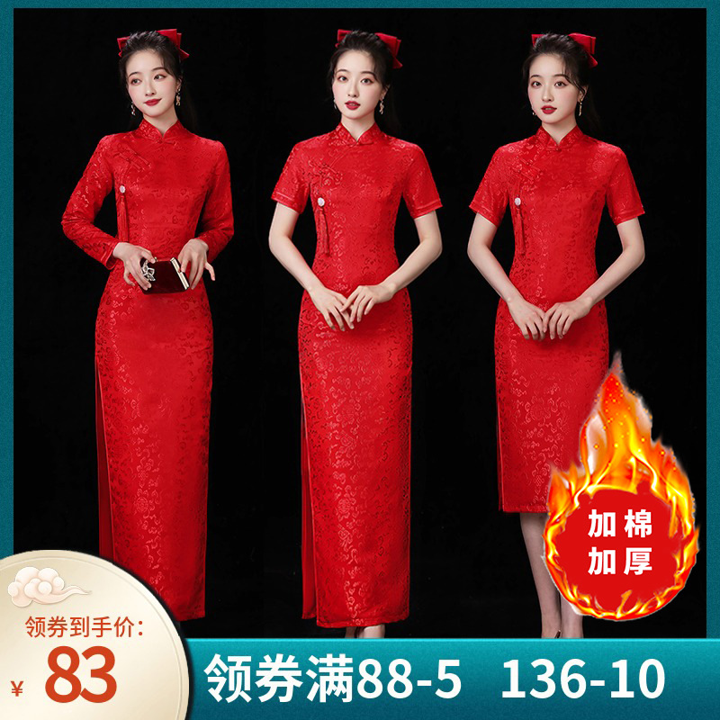 2022 musim gugur baru ditingkatkan beludru cheongsam lengan panjang happy mother-in-law high-end gaun pernikahan toast pakaian wanita grosir