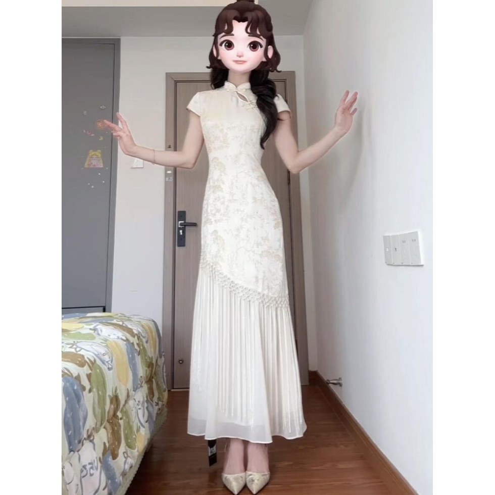 Cheongsam Harian Gaya Tiongkok Baru Modifikasi Model Muda Gaun Rumbai Wanita Besar Republik Tiongkok Gaun Gaya Nasional Musim Panas