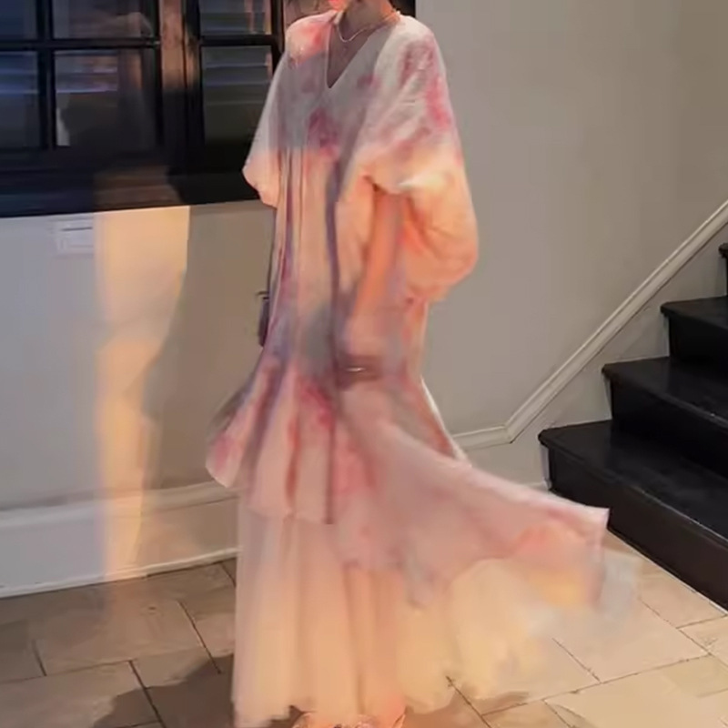 Kardigan renda retro peri super gaun ekor peri gaun gaun ganti gaun tidur kelas atas ekor panjang