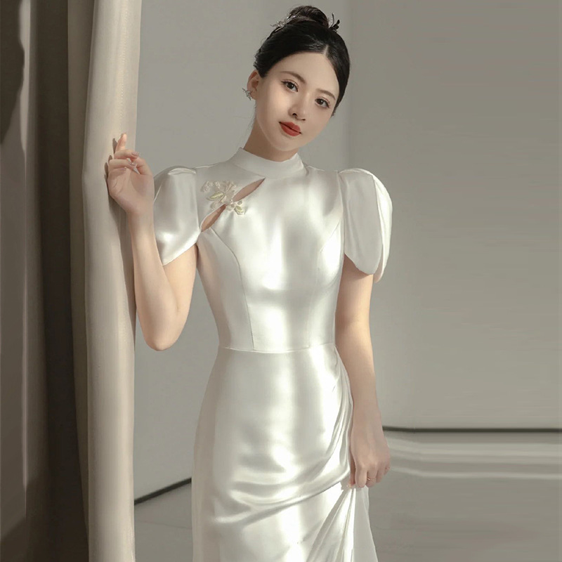 Gaun Menutupi Pinggul Ramping Membentuk Pinggang Membentuk Tubuh Membentuk Pinggang Gaun Cheongsam Modifikasi Gaya Tiongkok Baru