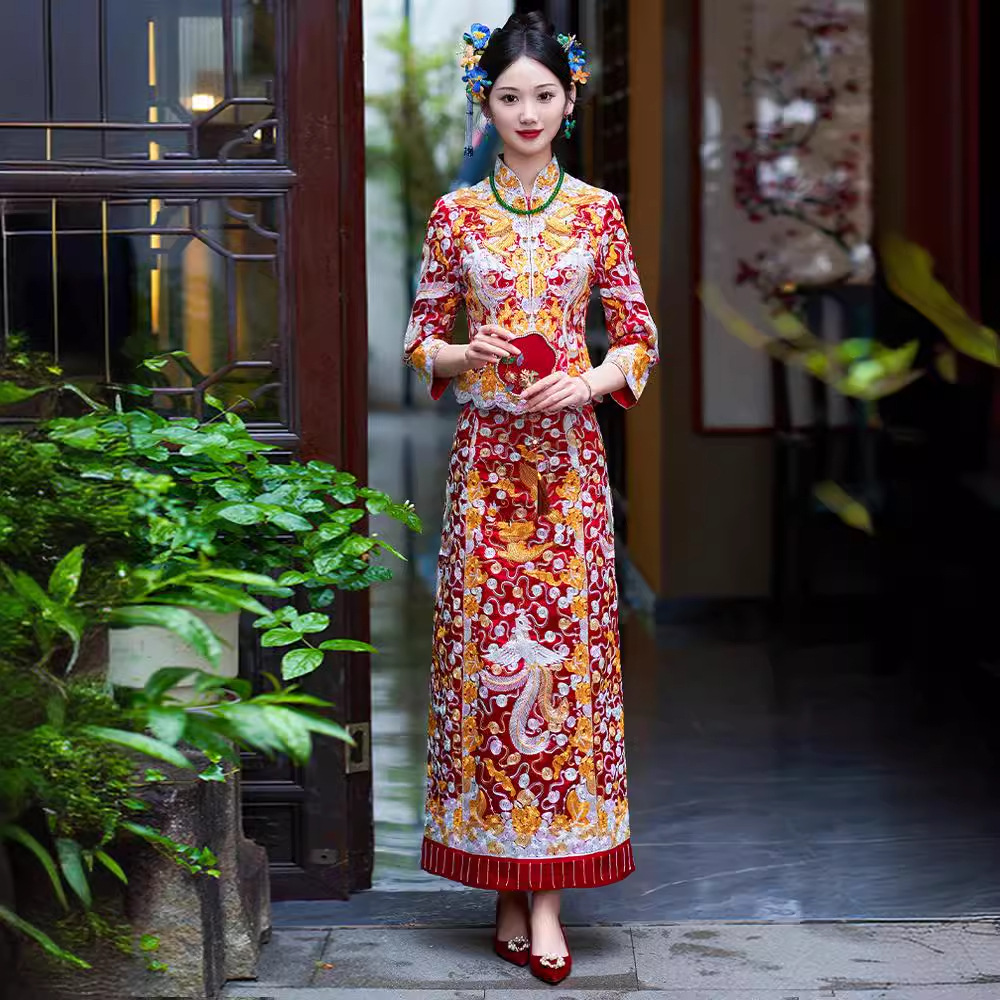 Gaun naga dan Phoenix gaun pernikahan gaun Xiuhe pengantin wanita gaun pernikahan kecil cina baru 2024 gaun kaisar lima Fu besar