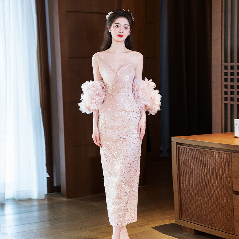 Gaun Pertunangan Merah Muda Pakaian Bersulang Pengantin Wanita Model Baru 2025 Pakaian Bersulang Mewah Kelas Atas Terlihat Kurus Wanita