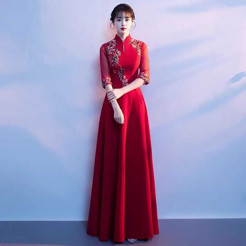 Gaun pernikahan ibu gaun pernikahan cheongsam beludru senang gaun pernikahan ibu mertua temperamen mulia dapat dipakai di musim semi pada waktu biasa