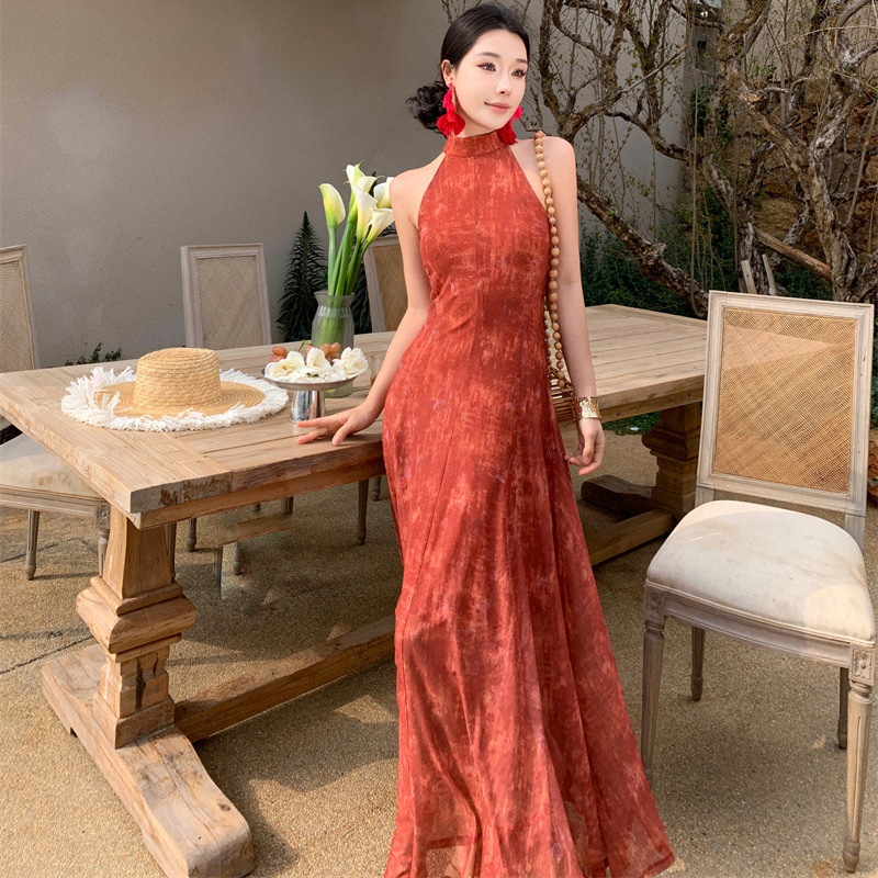 Gaun Malam Gaya Nasional Tanpa Lengan Berongga Seksi Model Baru Lintas Batas Eropa dan Amerika 2025 Gaun Malam Gaya Nasional Tanpa Lengan Trendi Celemek Trendi Rok Panjang