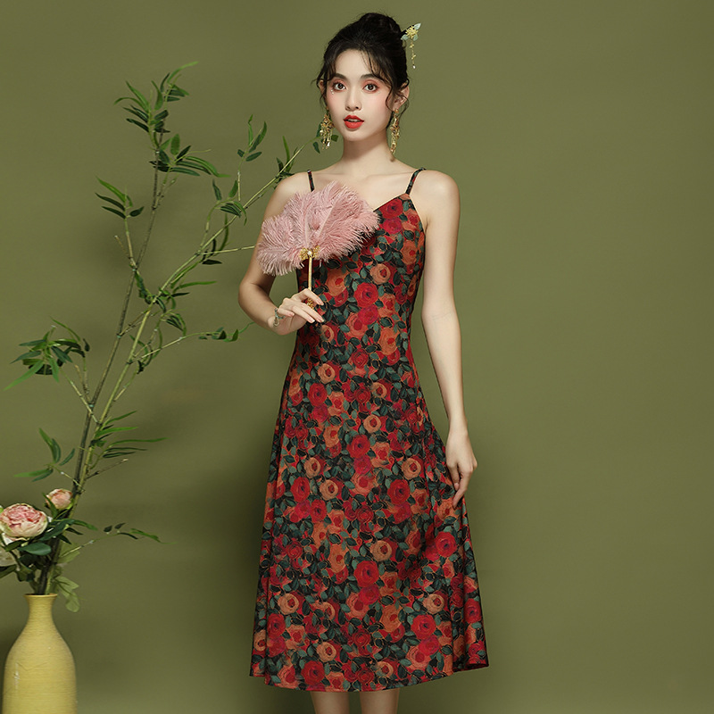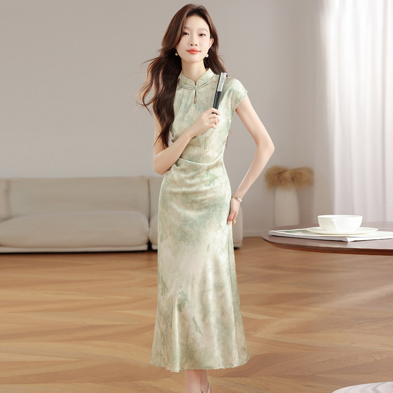 Gaun sling mode baru musim panas 2024 gaun cheongsam baru elegan muda ditingkatkan 24110