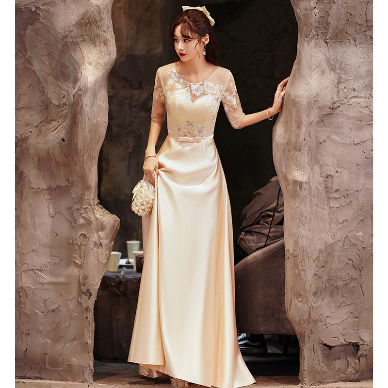 Gaun pengiring pengantin Cina 2023 gaun cheongsam baru wanita kelas atas sampanye saudara perempuan kelompok host upacara wanita