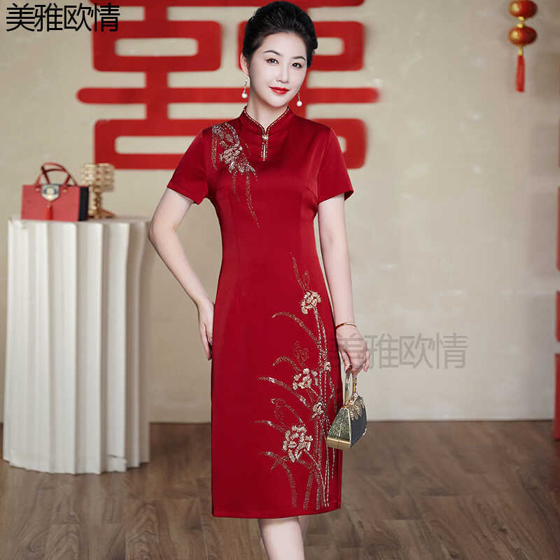 Gaun pesta pernikahan gaya musim panas terbaru 2026 untuk ibu mertua, qipao elegan dan modis untuk pernikahan ibu, gaun untuk bersulang.