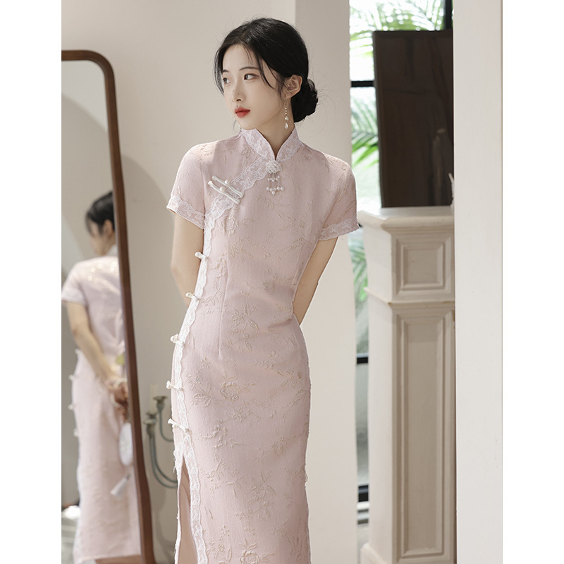 Cheongsam anak perempuan muda ditingkatkan, gaun pagi pertunangan merah muda musim semi dan musim gugur 2023, gaya Tiongkok baru harian dapat dipakai musim panas