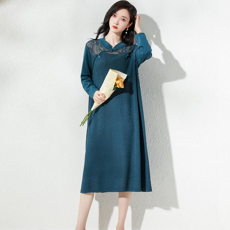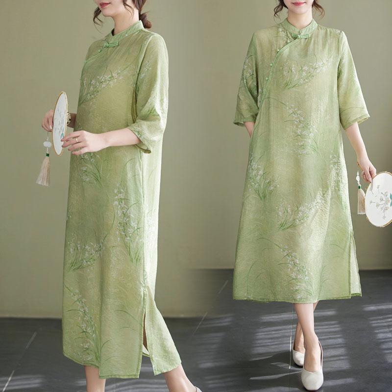 Gaun cheongsam, Gaun midi lengan tiga perempat retro artistik baru musim semi 2024