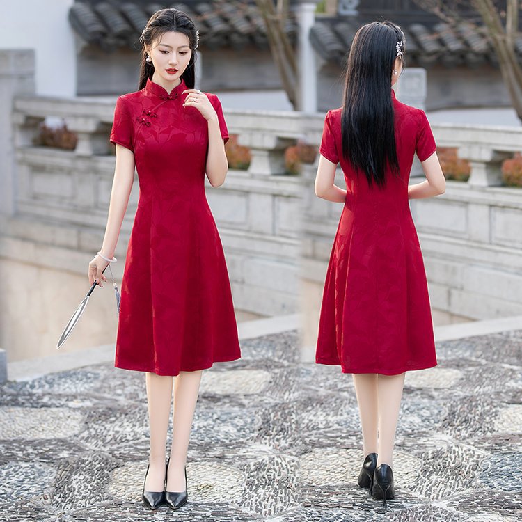 Cheongsam untuk Ujian Masuk Perguruan Tinggi Gaun Merah Membuka Pintu Wanita Gaun Cheongsam Pernikahan Ibu mertua Model Baru Musim Panas 2025