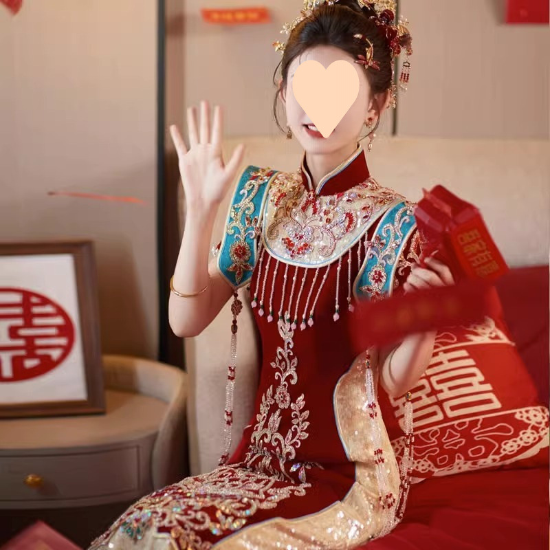 Gaun Pertunangan Gaun Pria Kecil Gaya Tiongkok Baru Kemewahan Ringan Model Tinggi Cheongsam Model Baru Pakaian Pernikahan Bersulang Pengantin Wanita Warna Merah