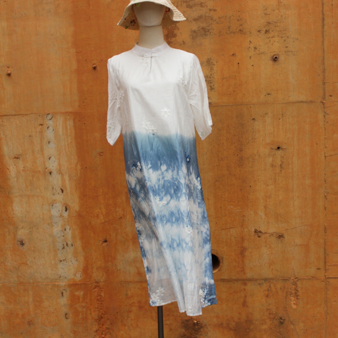 Dali Gaun Lengan Pendek Musim Panas Ukuran Besar Longgar Ibu Perjalanan Kegiatan Kasual Dye Dye Buatan Tangan Rok Cheongsam Rok Panjang