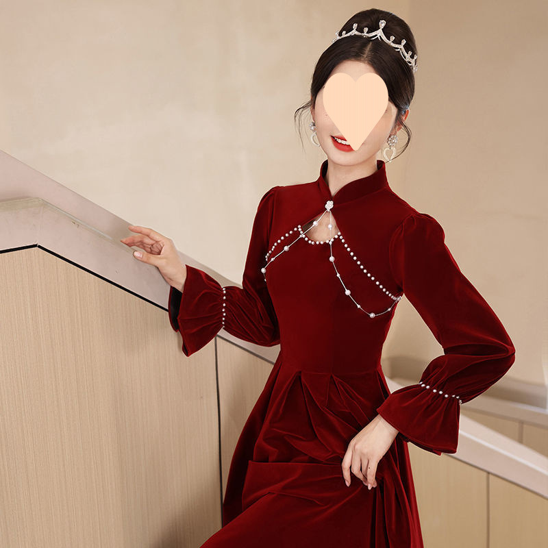 Pakaian Bersulang Pengantin Wanita Gaun Pernikahan Musim Semi dan Musim Gugur Model Baru 2025 Gaun Pernikahan Cheongsam Gaya Tiongkok Gaun Wanita Sentuhan Kelas Tinggi