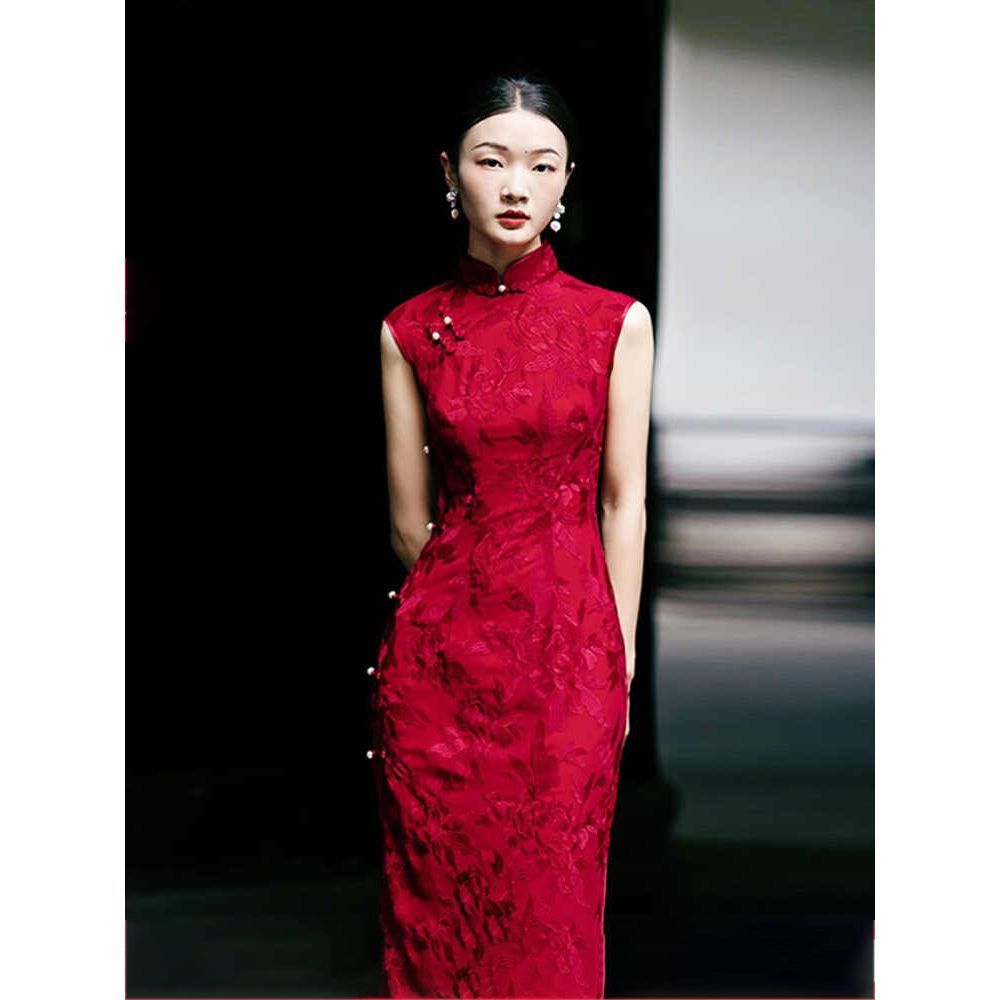 Cheongsam bordir merah untuk pengantin, gaun panggang Cina, gaun pesta pernikahan, cheongsam pelangsing, baru ditingkatkan 2024