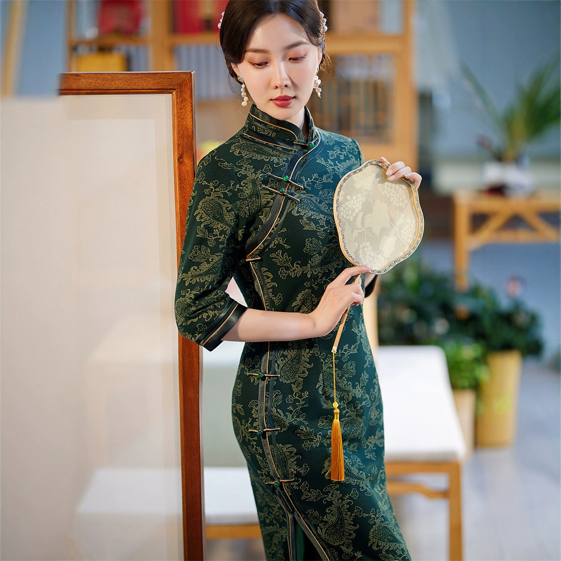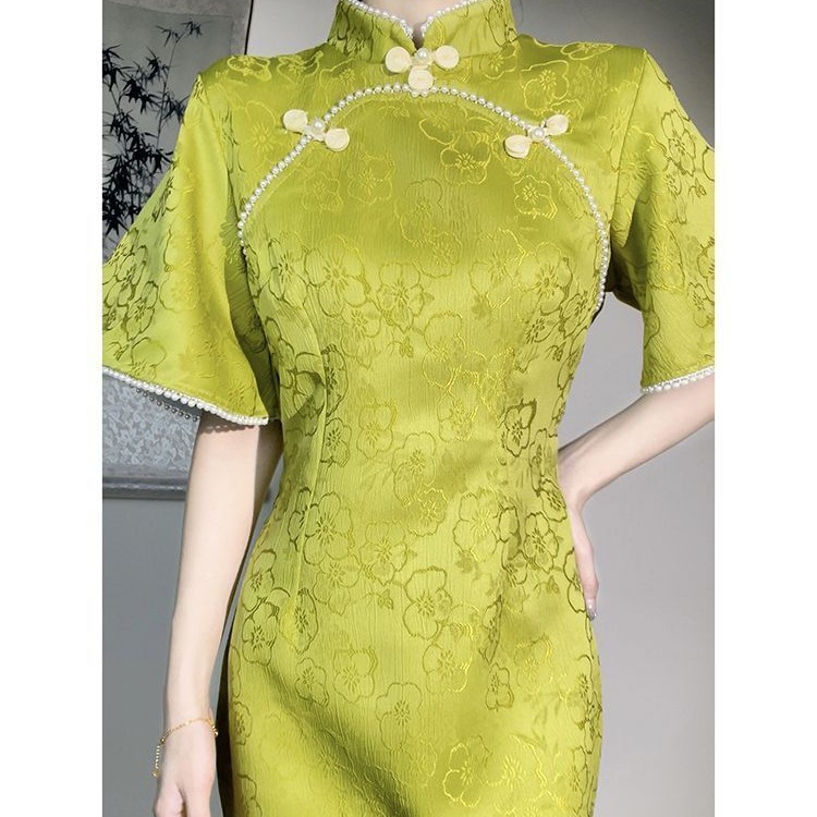 Gaun cheongsam ditingkatkan hijau musim panas terbalik lengan besar retro Republik gaya Tiongkok 2023 panjang kelas tinggi mengurangi usia sehari-hari baru
