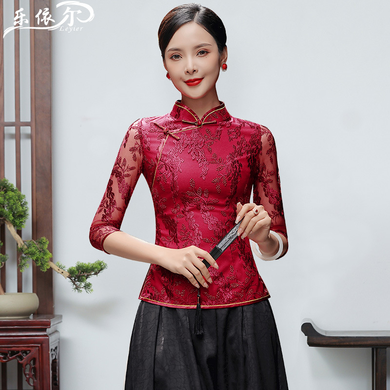 Gaun cheongsam elegan untuk musim semi dan panas, gaun pesta panjang setengah, riasan gaya etnik ditingkatkan warna merah nyaman musim panas 2023