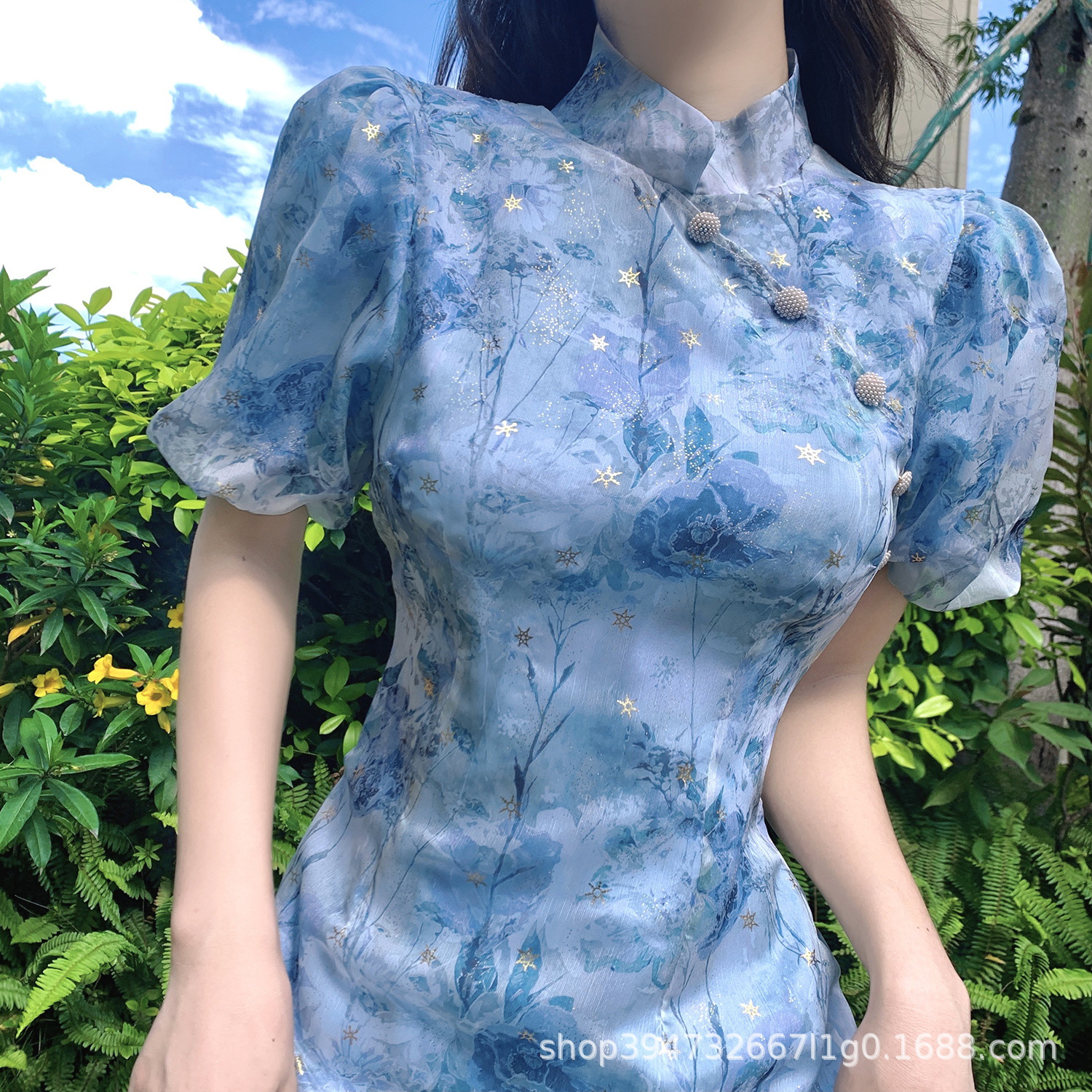 Baju cheongsam gaya Tiongkok, baju cheongsam, gaya China, baru, kerah berdiri pendek, gaya China, baju jacquard muda harian