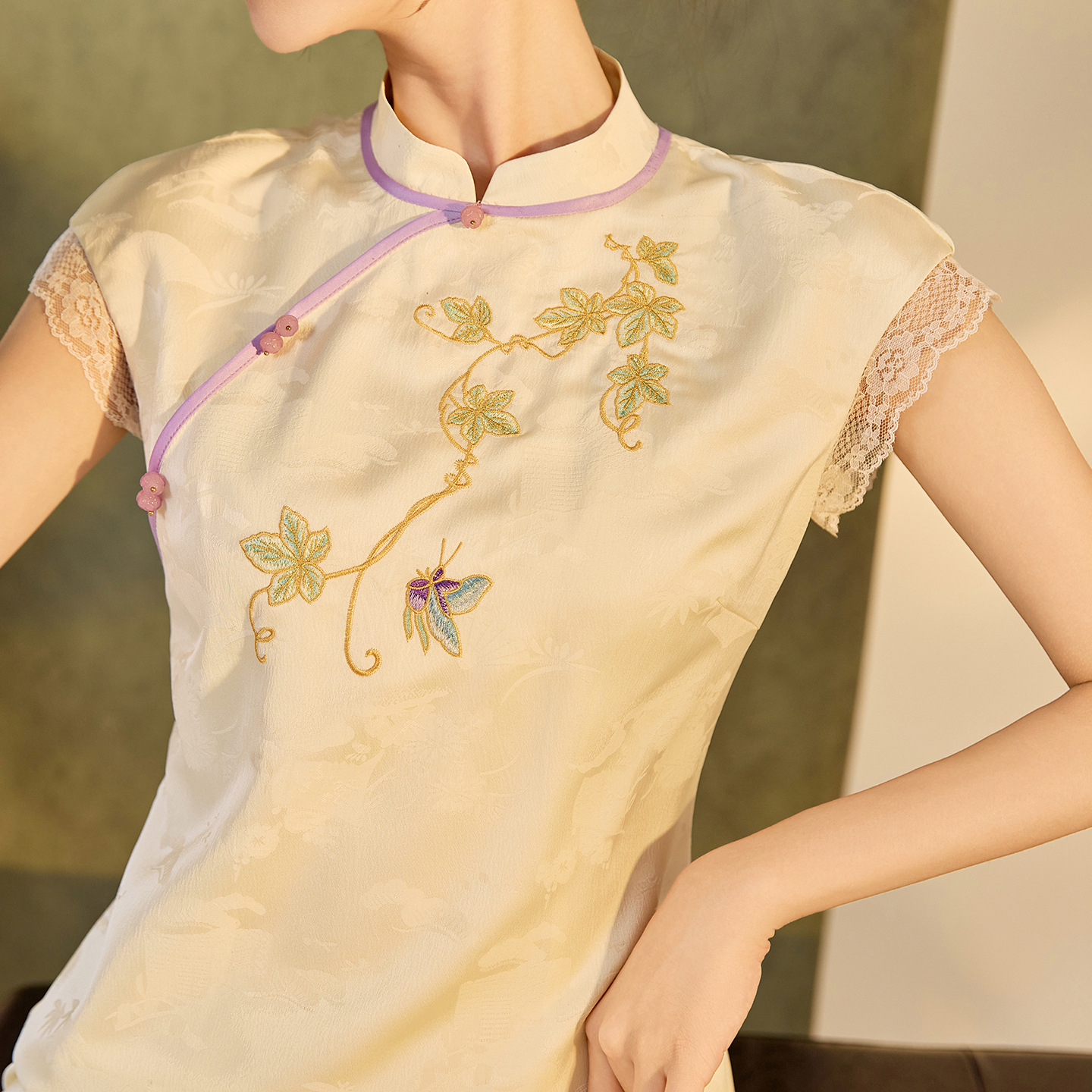 2025 cardigan miring cheongsam jacquard panjang menengah gaya Cina baru musim panas