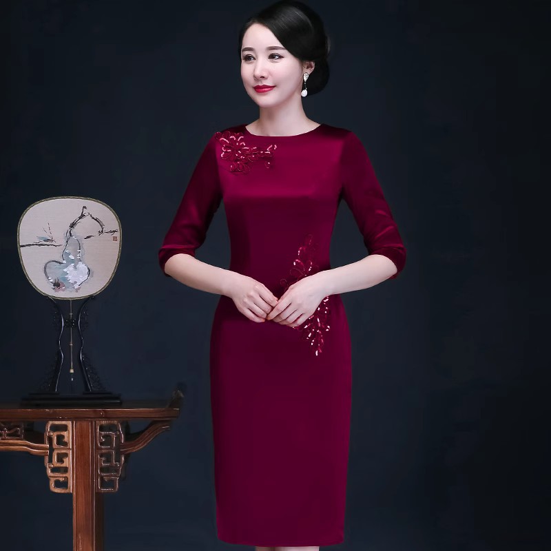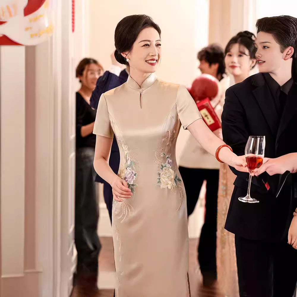 2024 baru Xi mother-in-law Xi ibu cheongsam gaun pesta pernikahan untuk pernikahan mother-in-law gaun fashion nasional