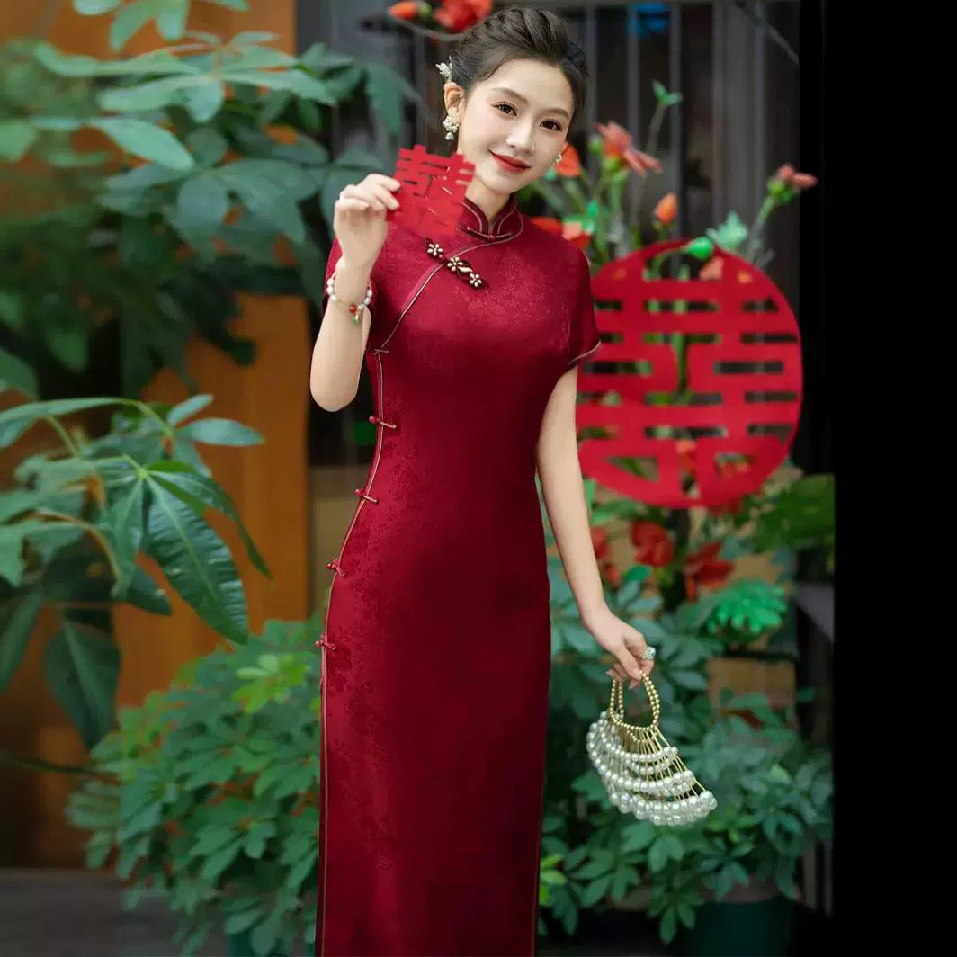 Rok Cheongsam Jacquard Gaya Cina Kecil Yang Diperbaiki Gaun Gaya Cina Baru Rok Pertunangan Elegan Karakter Membentuk Pinggang