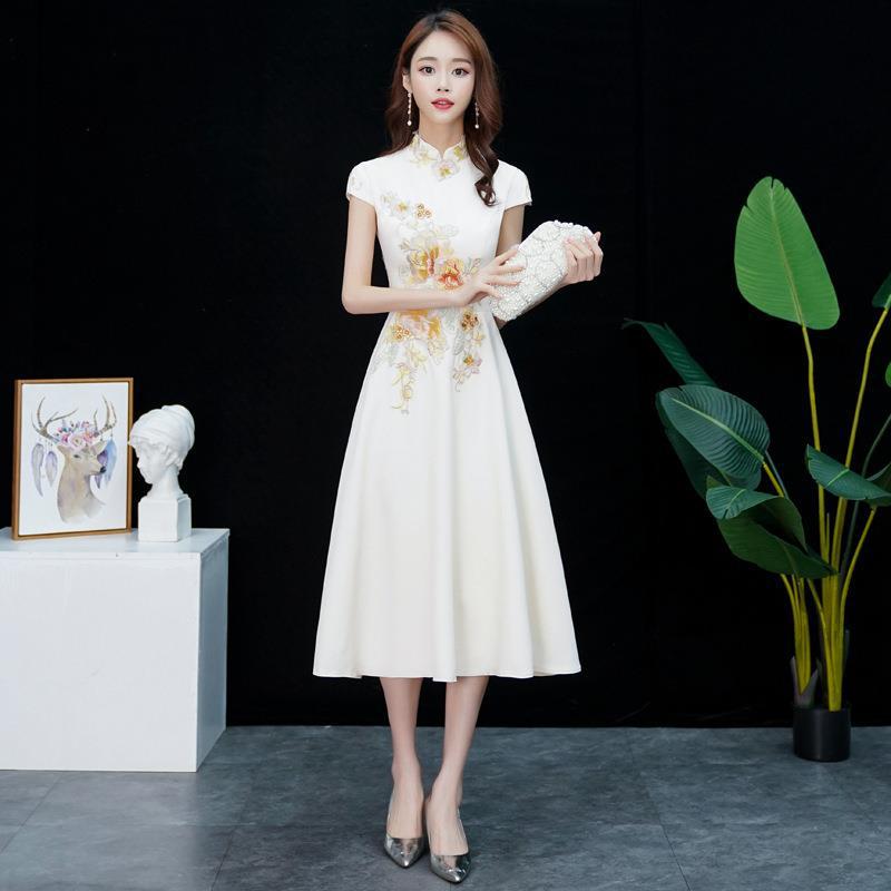 Gaun musim panas bergaya Cina dengan kerah berdiri dan lengan mengembang, gaun cheongsam bordir baru yang ditingkatkan dan mewah untuk wanita, model ZX N5036.
