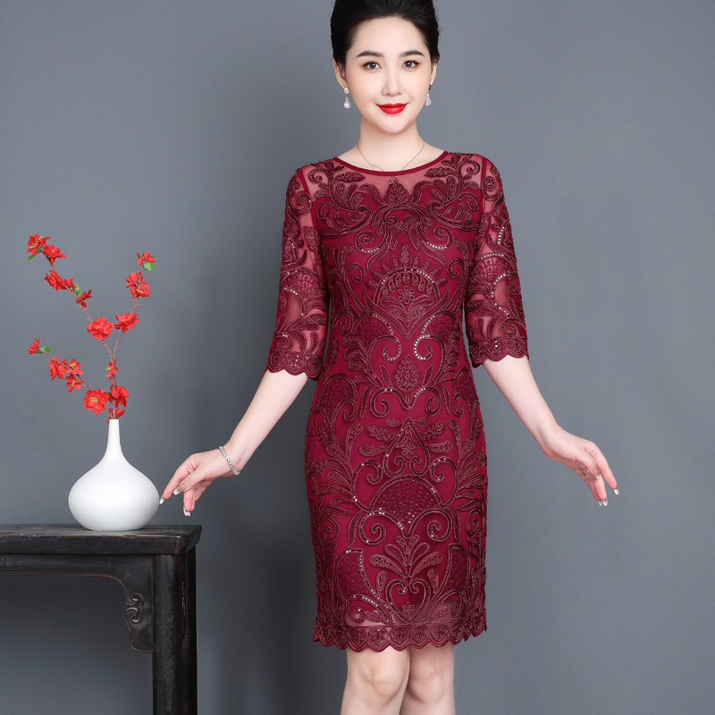 2023 musim semi baru pakaian ibu bermartabat pernikahan meriah jamuan selamat ibu mertua gaun cheongsam satu potong pengiriman