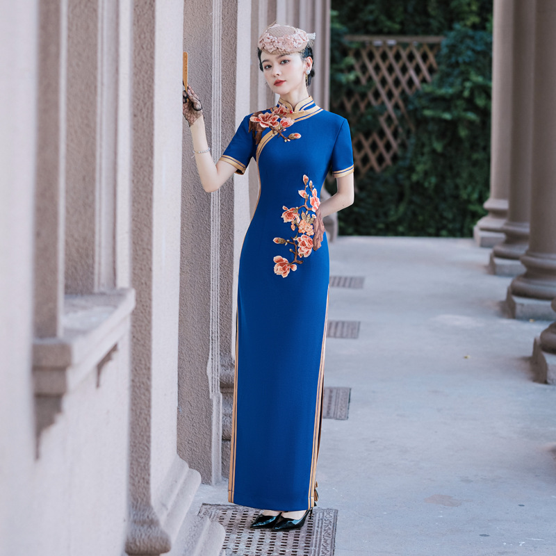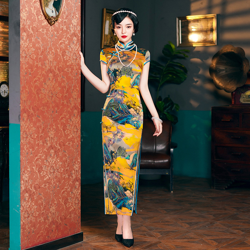 2020 baru musim semi dan musim panas gaun cheongsam panjang modis ibu usia sedang dan orang tua kinerja panggung catwalk jamuan makan cheongsam