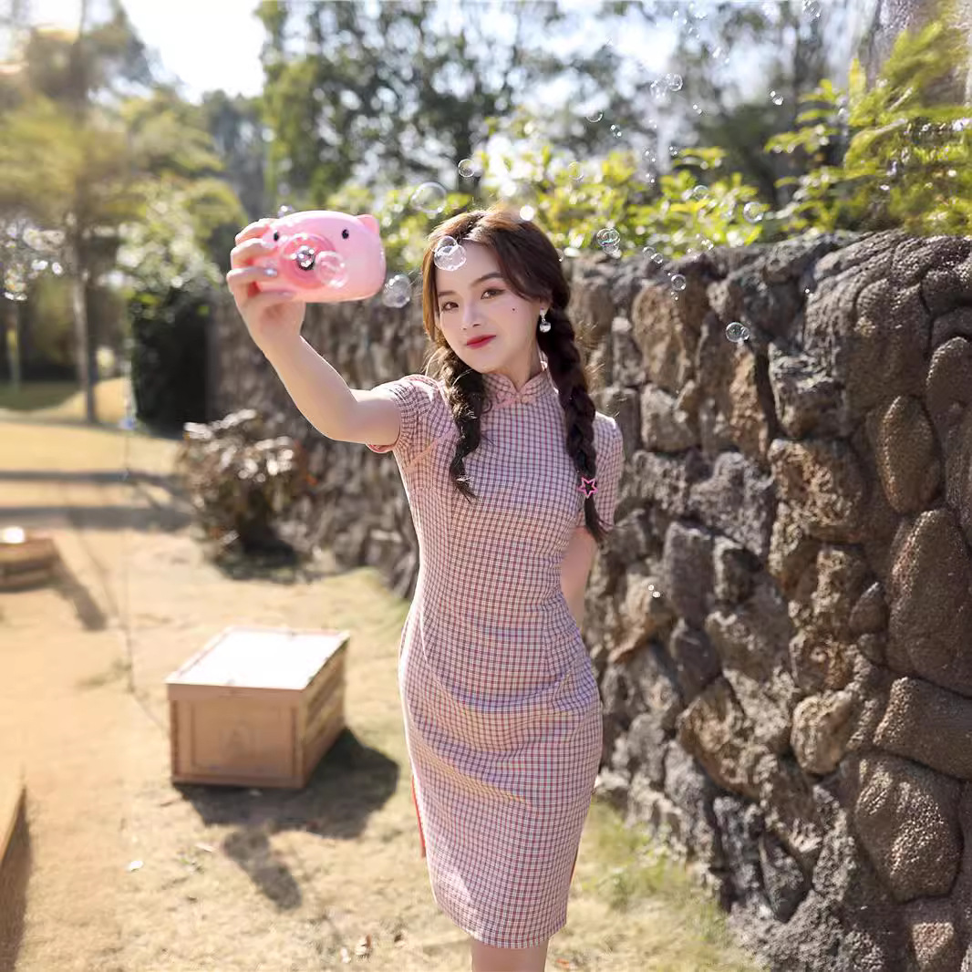 Gaun cheongsam gaya Tiongkok untuk wanita, gaun pendek cheongsam musim panas, Gaun fotografi kinerja harian, gaya China yang ditingkatkan, gaun cheongsam Selamat Datang