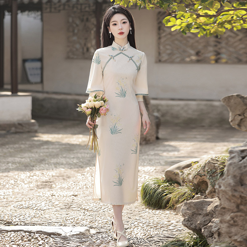 Cheongsam Wanita Versi Modifikasi Rok Cheongsam Retro Artistik Model Baru Musim Semi Musim Panas 2025 Gaun Panjang Sedang Elegan Perjamuan