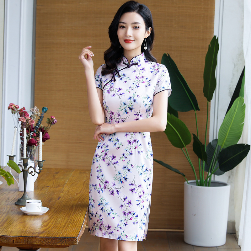 Grosir Cheongsam 2022 gaun sutra murbei baru musim panas gaun ramping lengan pendek ditingkatkan gaun cheongsam 3606