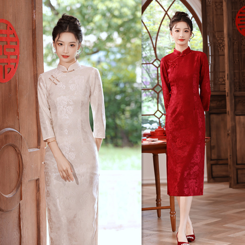 Gaun cheongsam gaya etnik Suzhou dan Hangzhou grosir 2023 "musim gugur dan musim dingin gaun merah pengantin yang ditingkatkan gaun jamuan makan Pernikahan