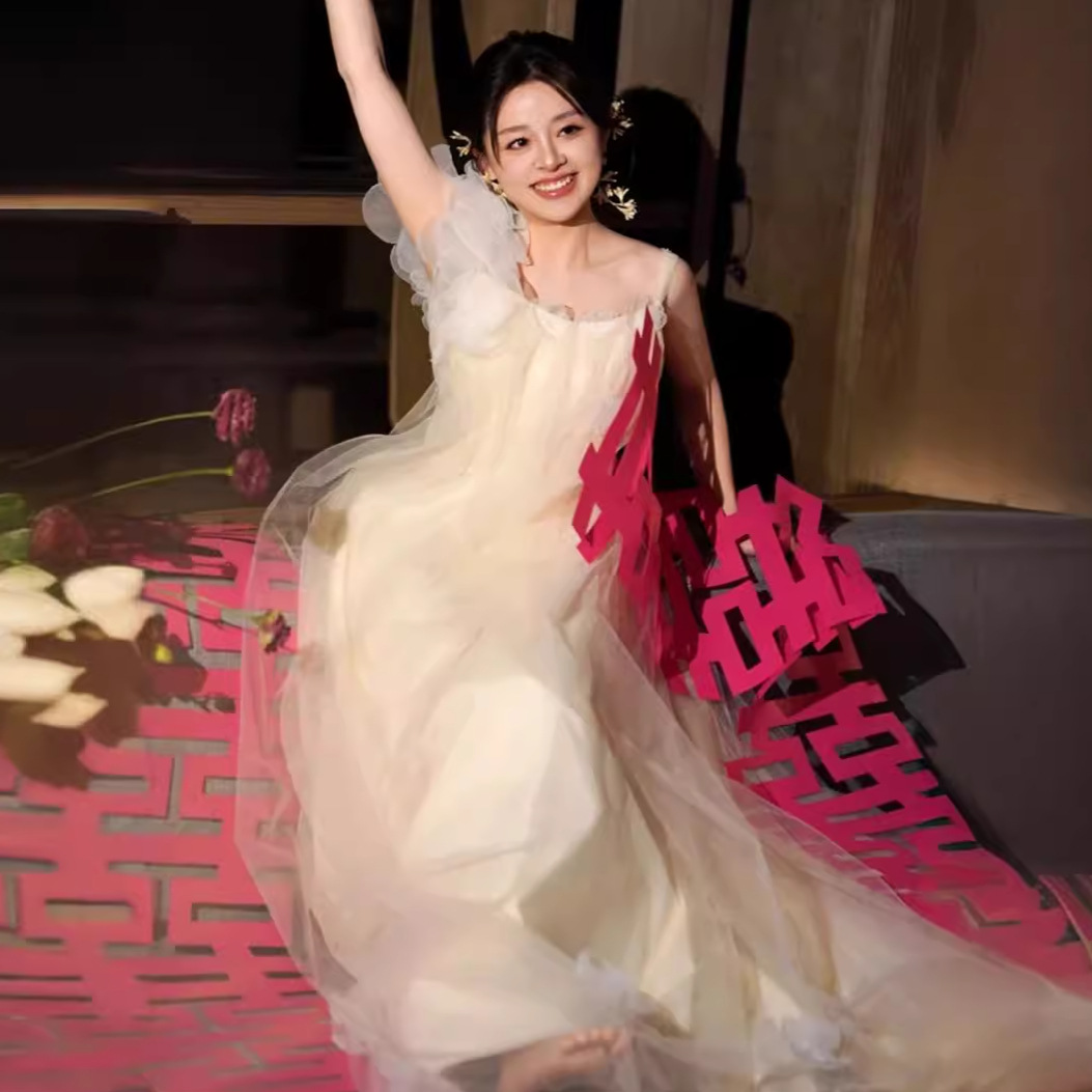Gaun pernikahan tali Mori baru gaun pagi Cina gaun pengantin mewah cahaya niche gaun pertunangan istana gaun jamuan makan