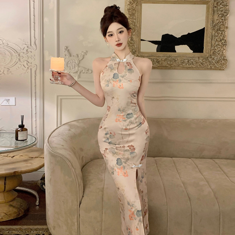 9093 Eropa dan Amerika 2024 grosir perdagangan luar negeri Asia Tenggara gaun ramping belah cheongsam Peningkatan temperamen wanita
