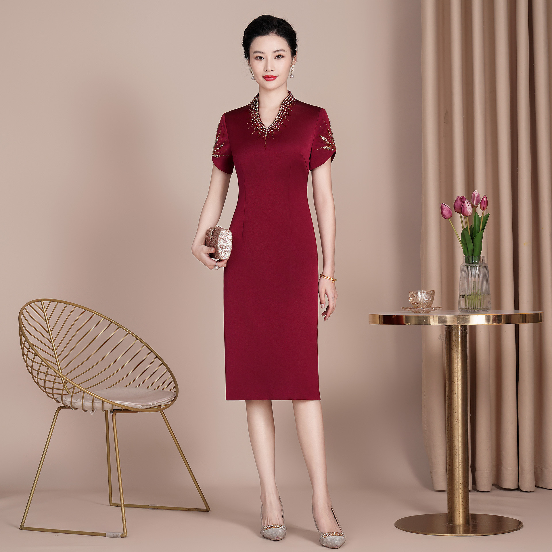 Gaun pernikahan ibu muda mulia cheongsam pernikahan pengantin wanita kelas atas gaun ibu mertua pernikahan banquet harian dapat dipakai pada waktu biasa